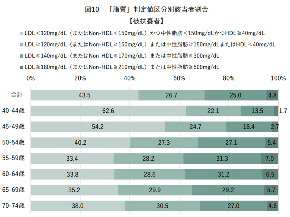 また、50歳代後半から60歳代の被扶養者(会社員の家族)では「脂質」の管理が重要である—。