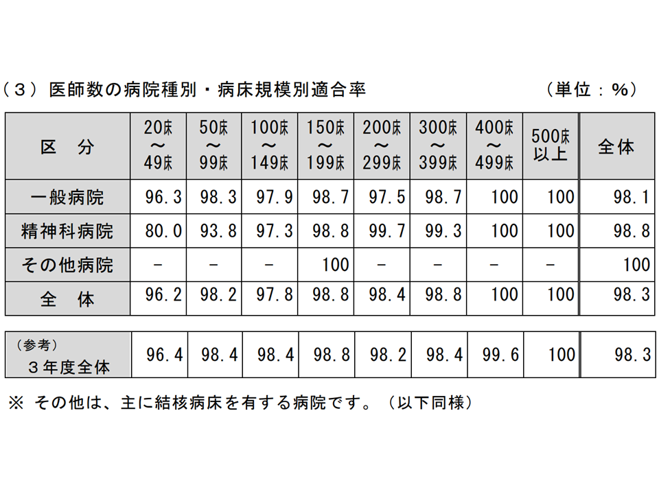 病院のスタッフ配置、医療法標準適合率は医師97.5%、看護師・准看護師99.4%、薬剤師97.6%—2020年度立入検査結果