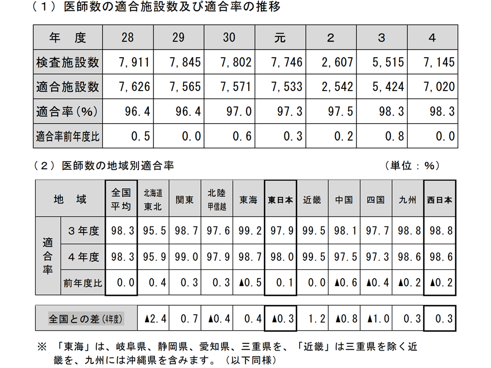 適合率の高い地域は▼四国(100.0%、前年度から増減なし)▼九州(99.6%、同0.3ポイント低下)▼中国(99.5%、同0.1ポイント上昇)▼北海道・東北(99.5%、同0.2ポイント上昇)—などですが、逆に▼東海(99.2%、同0.2ポイント低下)▼関東(99.3%、同0.4ポイント上昇)—などでは低くなっています。