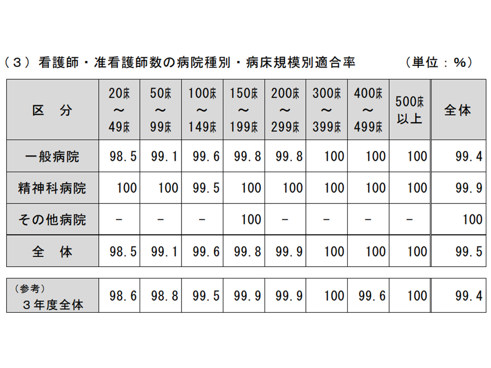 医療法の看護師等配置標準を満たす病院、前年度から0.2ポイント減少し98.8%に―2013年度立入検査結果