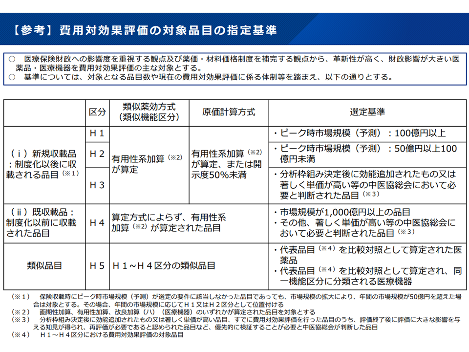 ・H3(同じく、分析枠組み決定後に効能追加されたものまたは著しく単価が高い等の中医協総会において必要と判断された品目):2品目