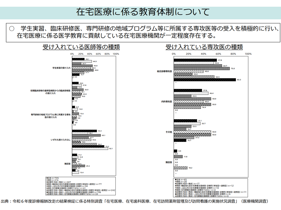 ▽「在宅医療に係る医学教育に貢献(専門医資格取得を目指す専攻医や臨床研修医、医学生等の受け入れ等)している在宅医療機関」も一定数存在する
