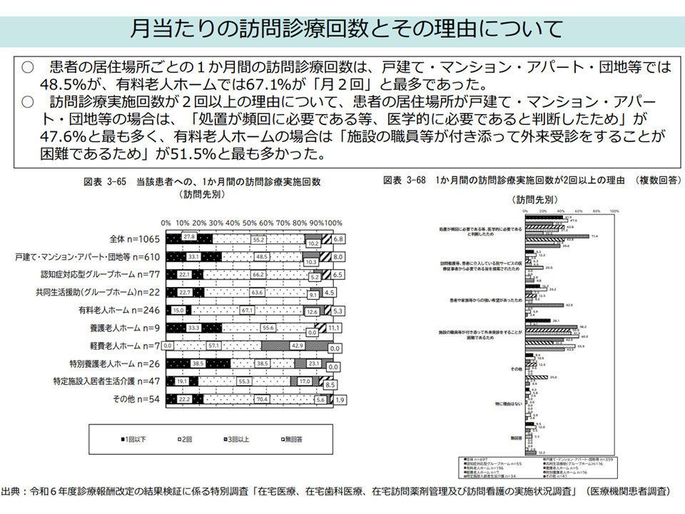 月当たりの訪問診療回数とその理由について(中医協総会12 251001)
