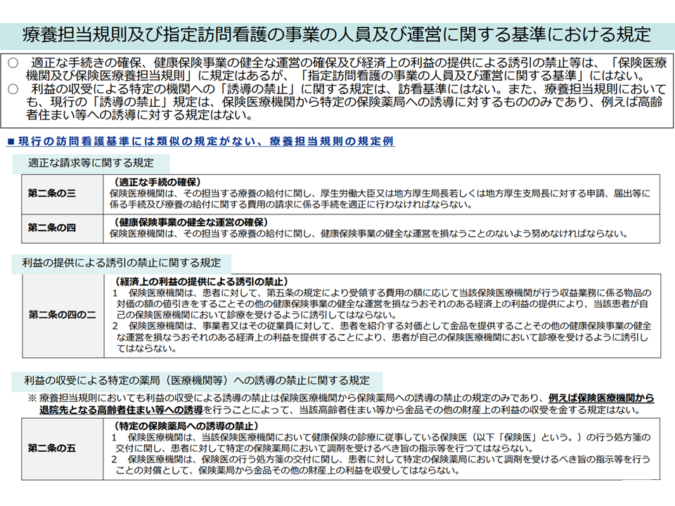 (c)「指定訪問看護の事業の人員及び運営に関する基準」でも、療養担当規則と同様に「適正な請求等に関する規定」などを設けてはどうか
