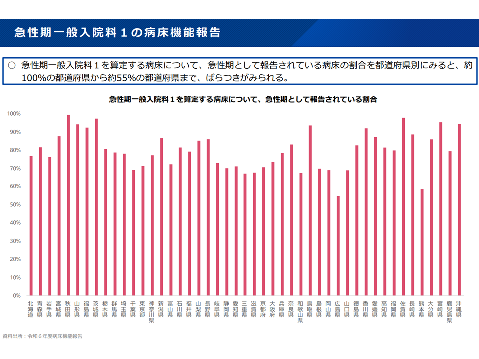 急性期一般1病棟の病床機能報告内容にはバラつきあり(社保審・医療部会(1)1 251003)