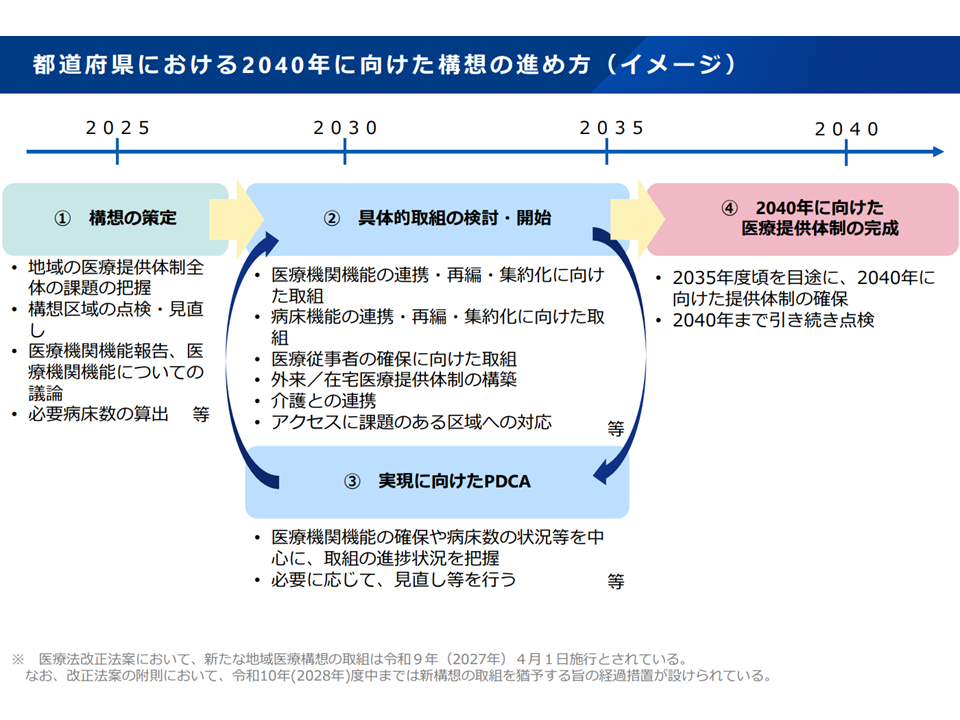 新地域医療構想は「2040年に帳尻が合えばよい」というものではなく、「いつ頃までに何を決定し、いつ頃までに何を実現すべきか」というスケジュール・工程表を一定程度明確にしておく必要があるのではないか—。