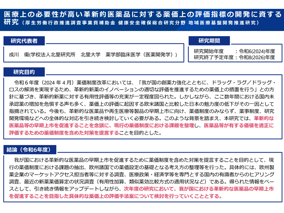【新規モダリティ等の⾰新的新薬のイノベーション評価】