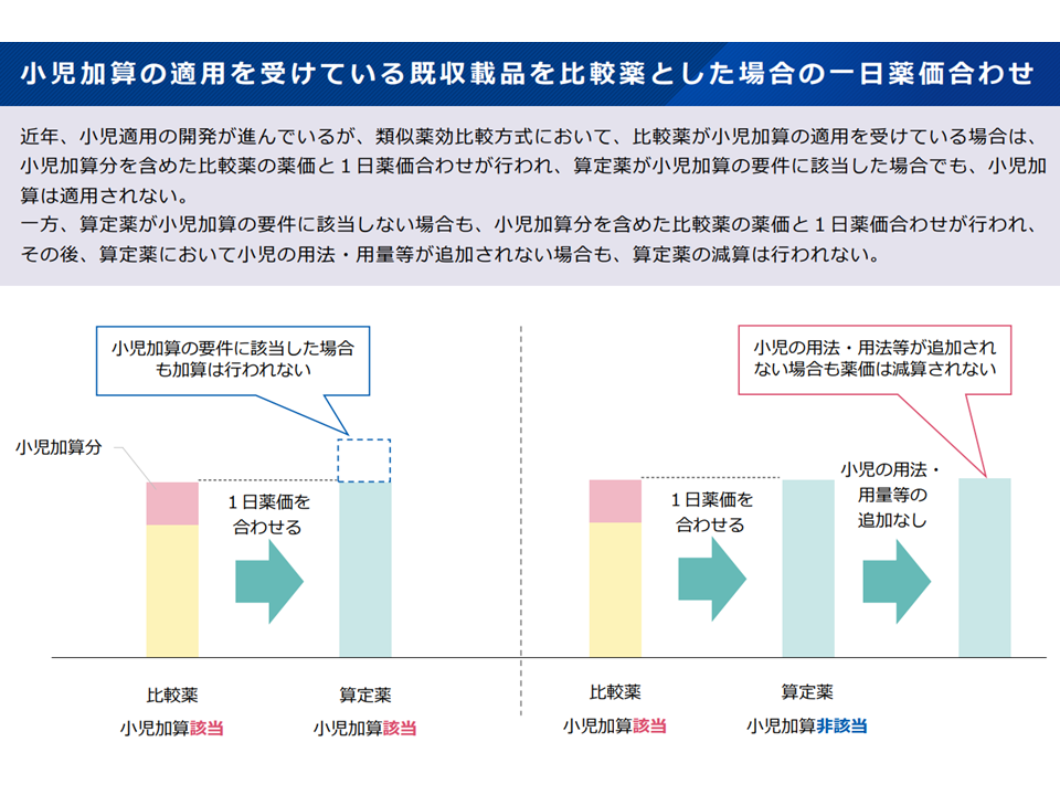 →類似薬効比較方式において「比較薬に小児加算が適用されている」が、「新規収載品は小児加算の要件に該当しない」場合をどう考えるか