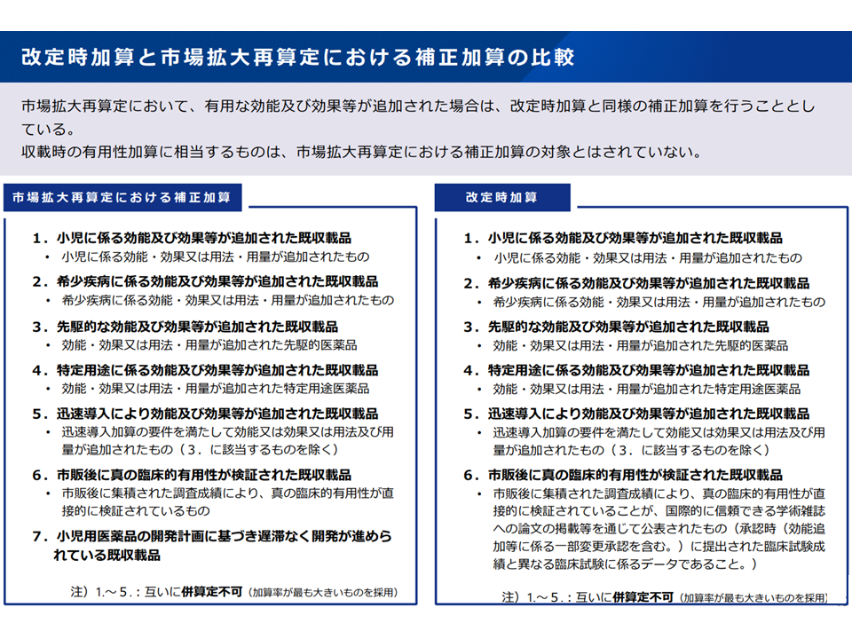 →市場拡大再算定時の追加効能への補正加算について、改定時加算との整合性を踏まえてどう考えるか