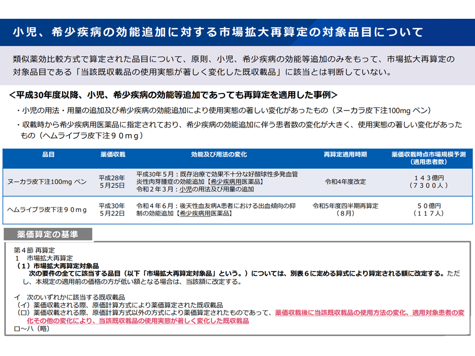 ▽希少疾患、小児の効能追加における市場拡大再算定