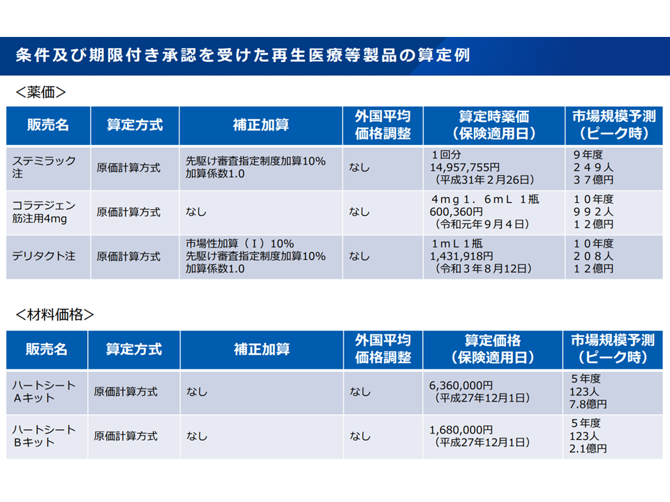 条件・期限付き承認を受けた再生医療等製品の保険適用(価格設定)ルールを検討