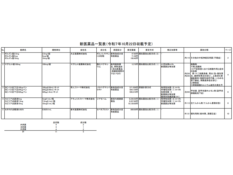 【新たに保険適用される医薬品】(本年(2025年)10月22日に保険適用(薬価基準収載)予定)