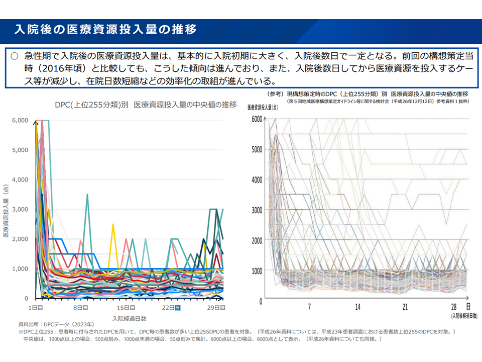 ▽時間の経過とともに「入院初期により多くの医療資源を投入する」傾向がある(2016年→2023年)
