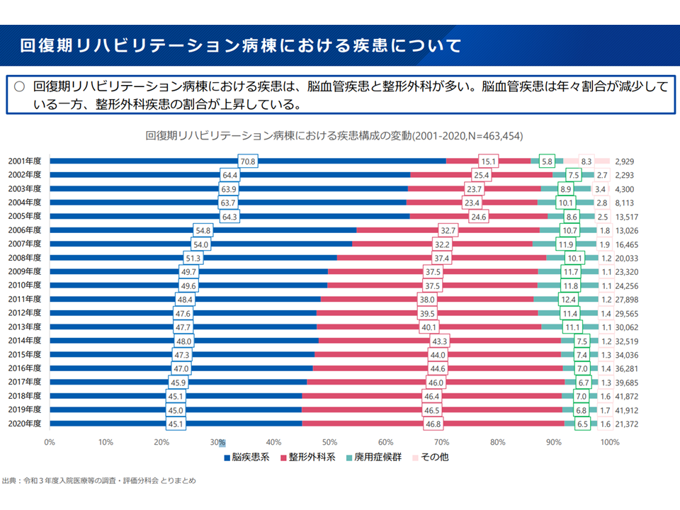 ▽脳血管疾患の割合が減少し、整形外科疾患割合が増加している