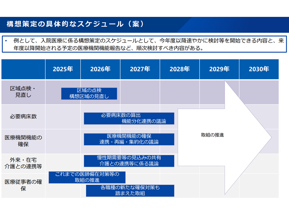 新地域医療構想は「2040年に帳尻が合えばよい」というものではなく、「いつ頃までに何を決定し、いつ頃までに何を実現すべきか」というスケジュール・工程表を一定程度明確にする—。