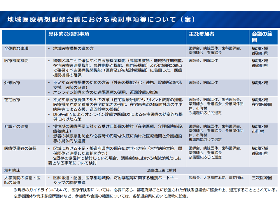 新地域医療構想をどのように進めていくか、参加者・スケジュール・検討項目など整理