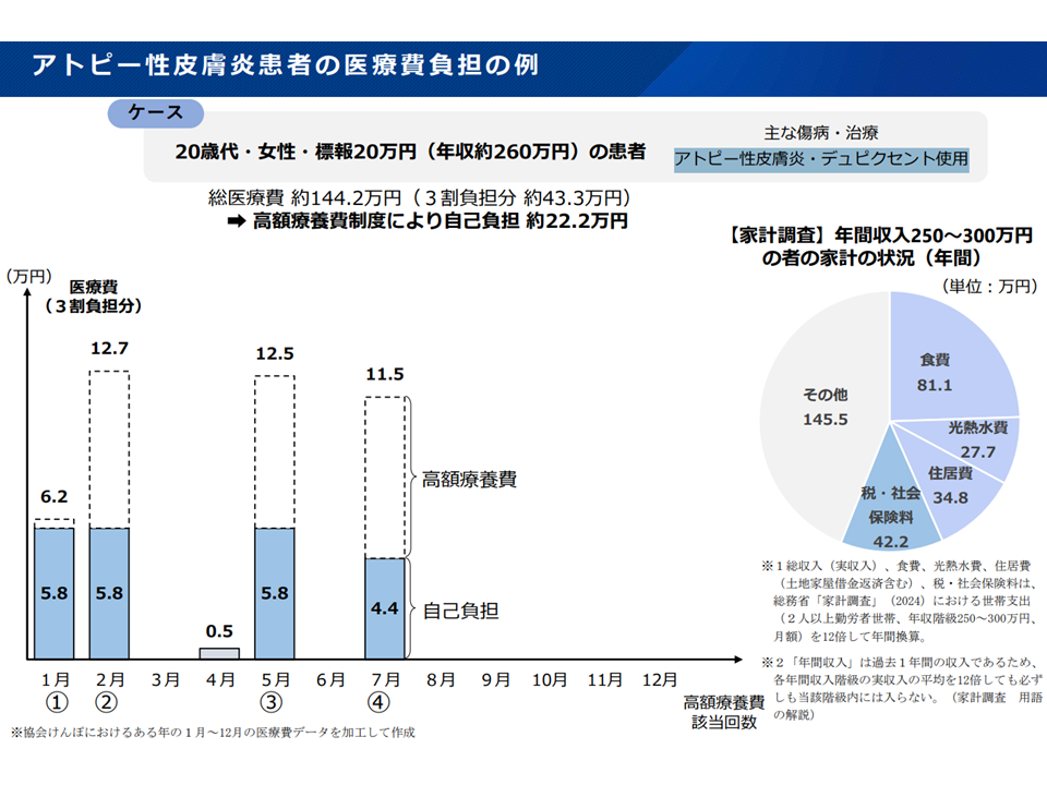 (e)20歳代・女性・標準報酬月額20万円(年収約260万円)の重症アトピー性皮膚炎患者が、デュピクセント投与を受けたケース
