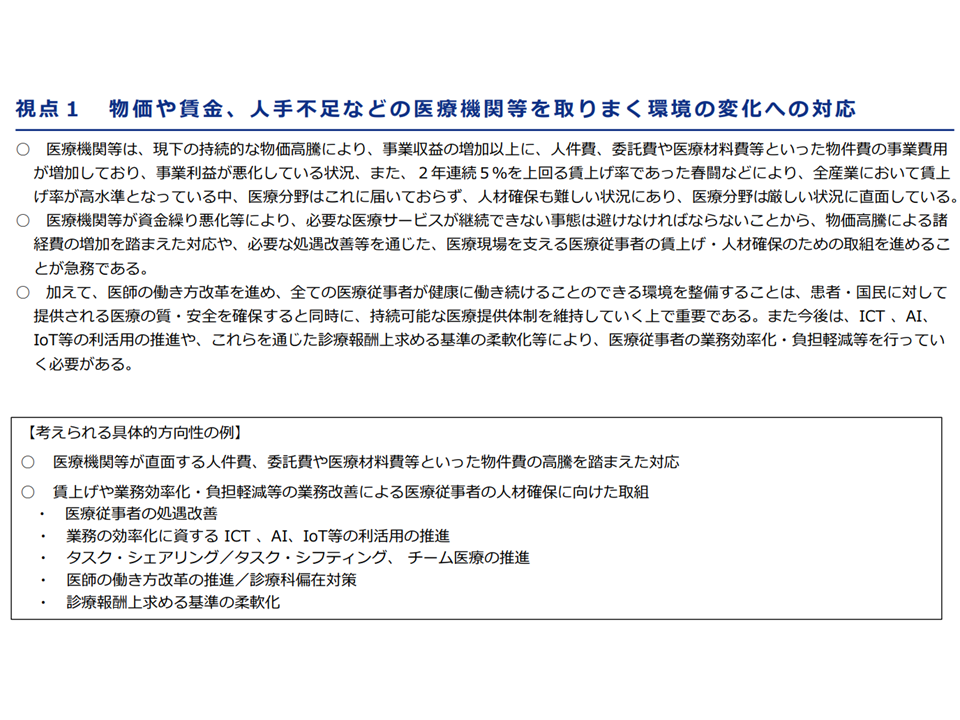 【視点1】物価や賃金、人手不足などの医療機関等を取りまく環境の変化への対応