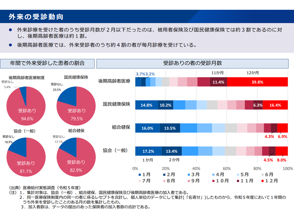 (b)現役世代に比べて、後期高齢者は「外来診療の受診頻度」が極めて高い