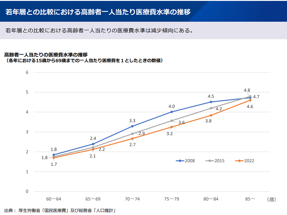 (a)若年層との比較における高齢者一人当たりの医療費水準は減少傾向にある