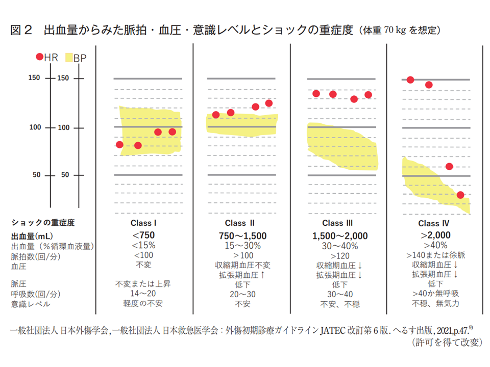 →SIが「1に達する前」に、出血に伴うバイタルサインの推移や末梢循環不全を示唆する所見を把握することが重要