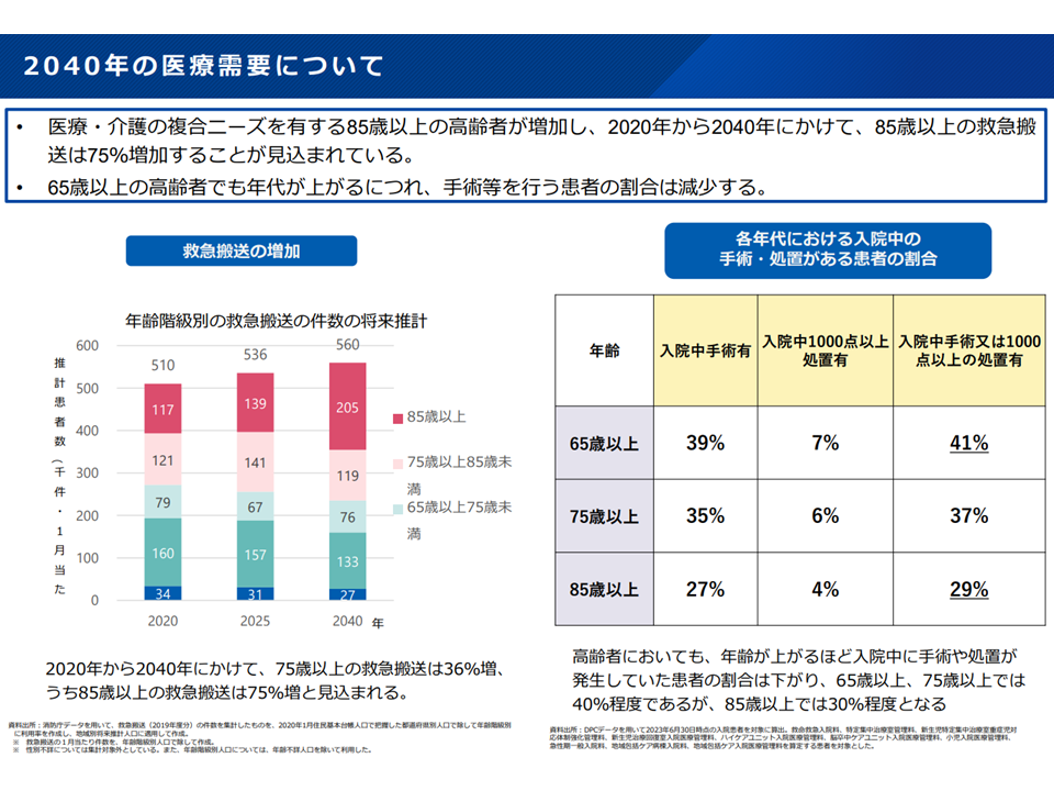 2040年頃を目指した「新たな地域医療構想の実現」が、医療提供体制における重要なテーマとなっています。
