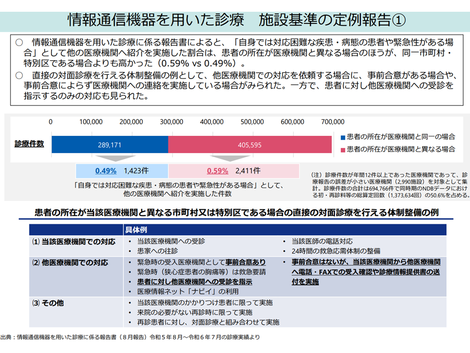 ▽オンライン診療では「患者の状態が『オンライン診療では対応困難』な場合に、直接の対面診療を行える体制」整備が求められているが、患者に対し「他医療機関への受診を指示するのみ」といった対応も見られる