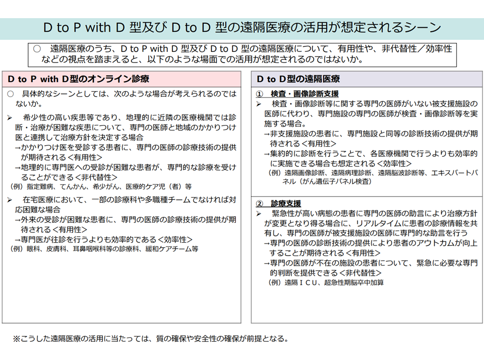 D to P with D・D to P with Nなどの有用性・安全性向上につながるオンライン診療推進