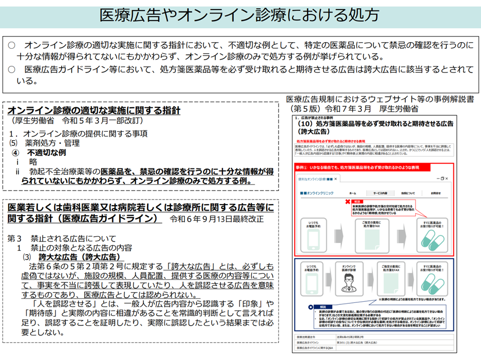 一方、「不適切なオンライン診療」も存在する可能性があり、例えば次のような状況報告が行われました。