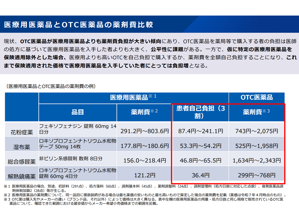 類似の一般用薬があるOTC類似薬(医療用)、保険給付の在り方をどう考えるべきか