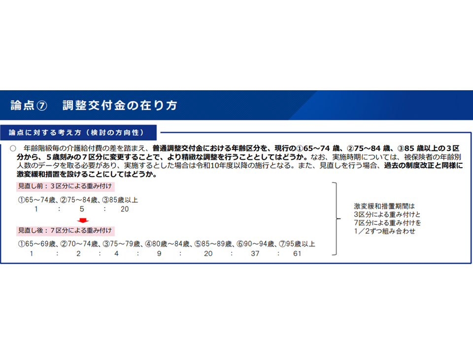 市町村内の高齢者の人口を「より細かい年齢区分」で把握し、調整交付金の配分等を精緻化してはどうか(社保審・介護保険部会4 251110)
