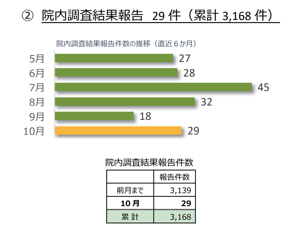 今年(2025年)10月に新たに院内調査が完了した事例は29件で、制度発足からの累計では3168件となりました。