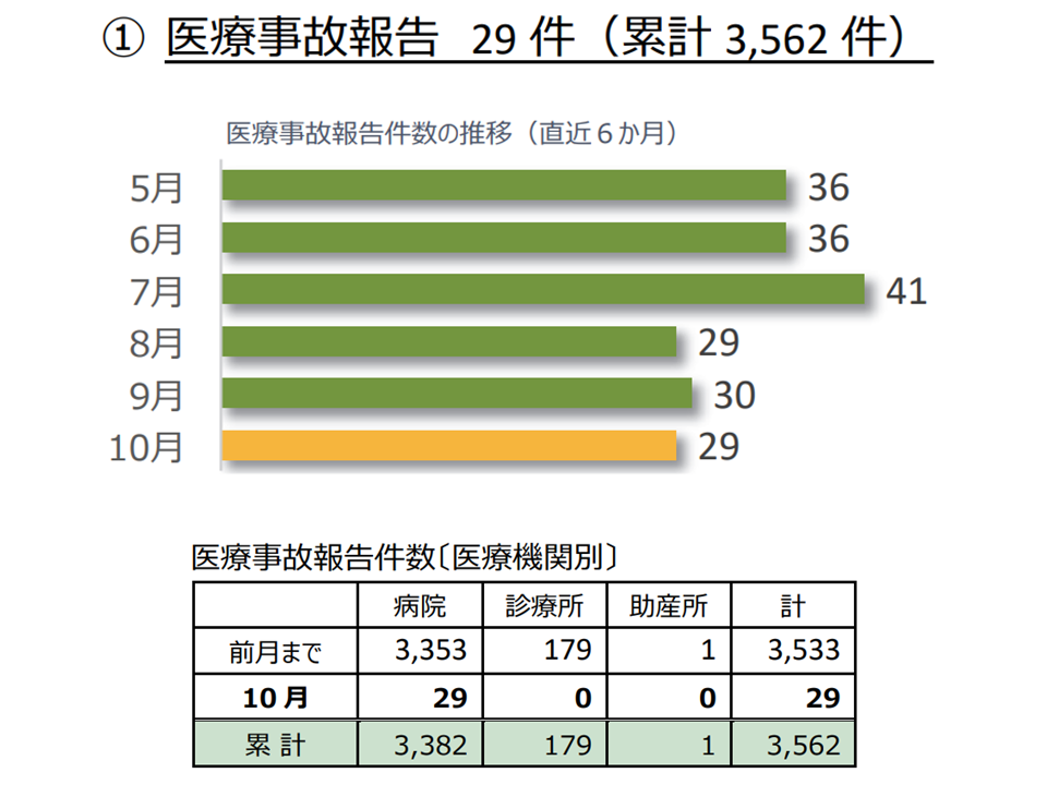 2025年10月の医療事故報告は29件、制度発足からの累計では3562件の事故報告