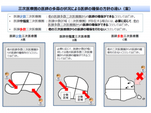 医師多数区域では、偏在の助長を防ぐために、「他地域からの医師派遣など」を医師確保計画に盛り込むことはできない(好ましくない)(その1、3次医療圏)