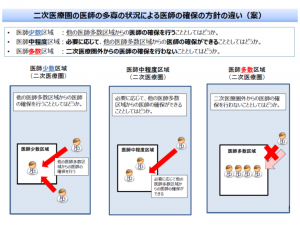 医師多数区域では、偏在の助長を防ぐために、「他地域からの医師派遣など」を医師確保計画に盛り込むことはできない(好ましくない)(その1、2次医療圏)