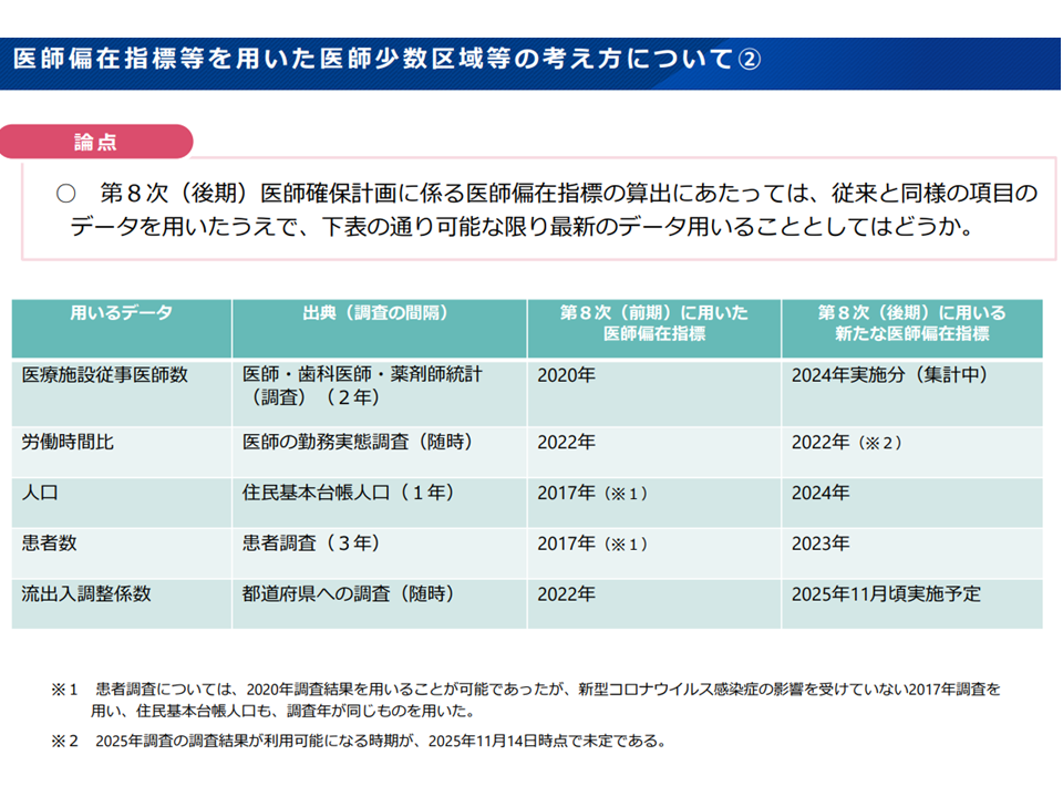 医師偏在指標の新設定に向けた最新データ活用(地域医療構想・医療計画検討会5 251114)