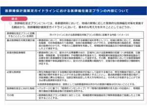 →そのうえで、地域医療対策協議会の意見を踏まえつつ、▼幅広い診療領域を担える医師や特に不足している診療科の医師の確保▼オンライン診療を組み合わせた不足する診療機能の補完―などにも取り組む