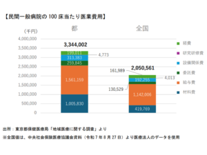 都内は物価・人件費が高く、材料を多く使う急性期病院が多い