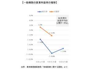 ▽都の調査によれば、2023年度における都内一般病院の医業利益率は「マイナス9.6%」で、全国平均の「マイナス2.3%」に比べて大幅に低い