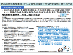 このため、 救急病院での医師働き方改革を評価する【地域医療体制確保加算】について、2024年度の前回診療報酬改定で「B水準等が適用される勤務医の1年間の時間外・休日労働時間に関して、2024年度には1785時間以下とする、2025年度には1710時間以下となる」などの施設基準厳格化が図られています。