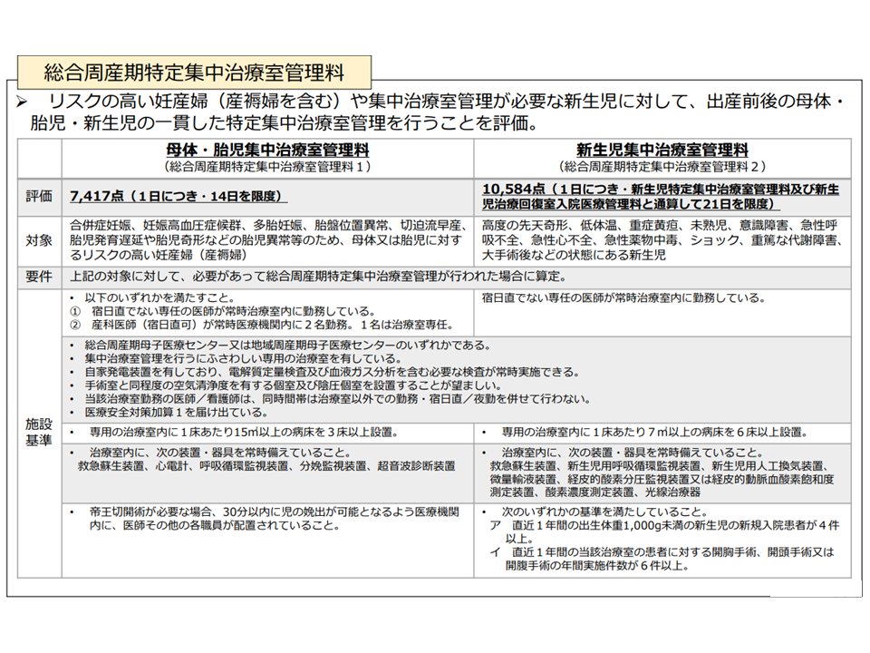 母体・胎児集中治療管理料の施設基準見直し(2024改定)(中医協総会(2)2 251119)