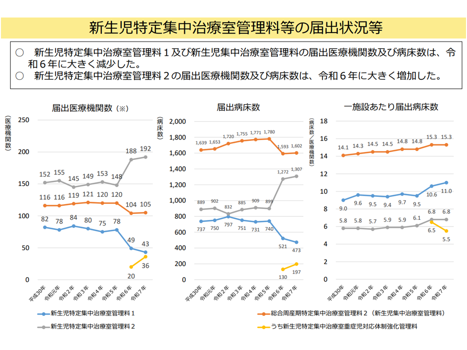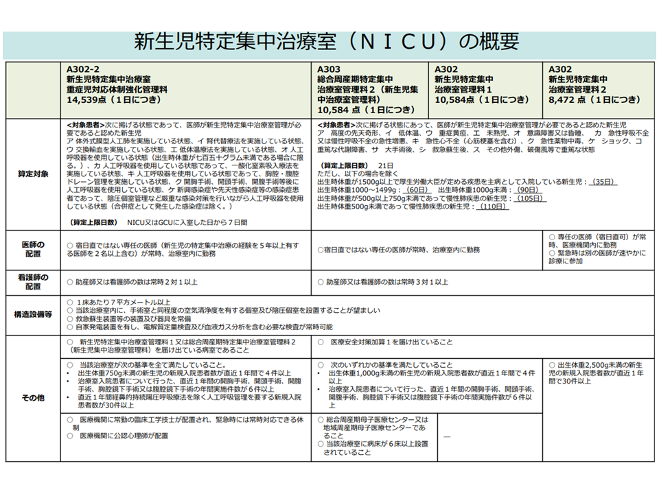 NICU(新生児特定集中治療室管理料)などの施設基準概要(中医協総会(2)11 251119)