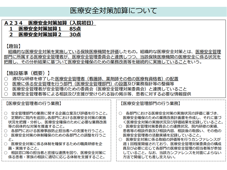 さらなる医療安全確保に向けて【医療安全管理加算】等も要件見直しへ