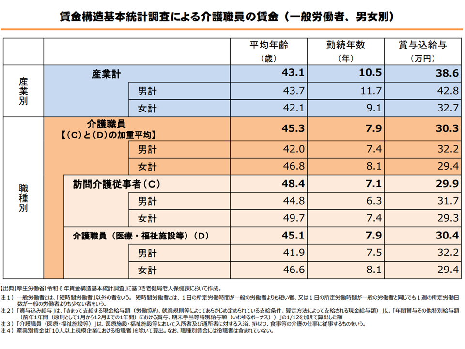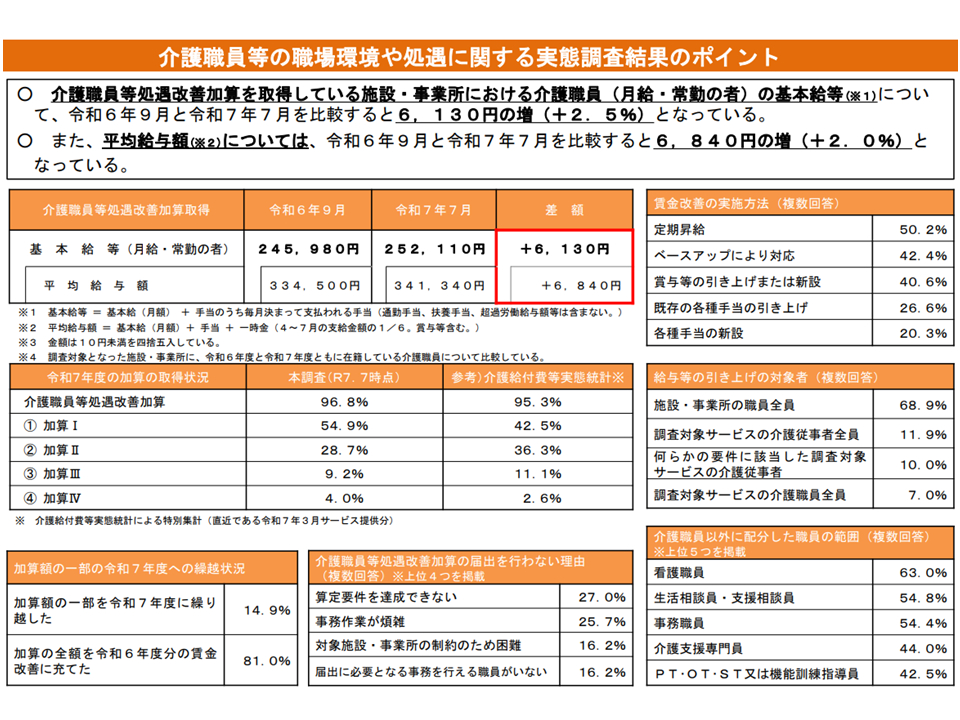 2024年9月から25年7月にかけて介護職員の給与は平均で6840円・2.0%増加