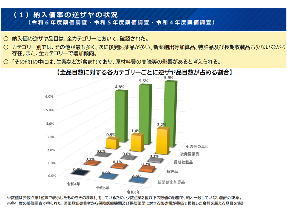 ▽医療用医薬品の流通改善に関する懇談会において、後発品やその他の品目において逆ザヤが多いと確認されたことを踏まえ、逆ザヤの解消の観点からの「低薬価品が多い後発医薬品やその他の品目への薬価の下支え」をどう考えるか
