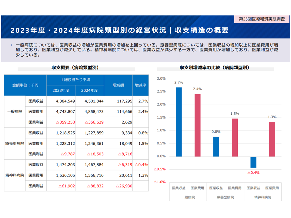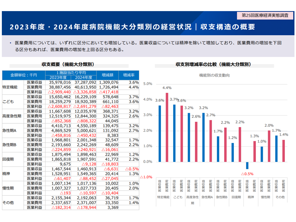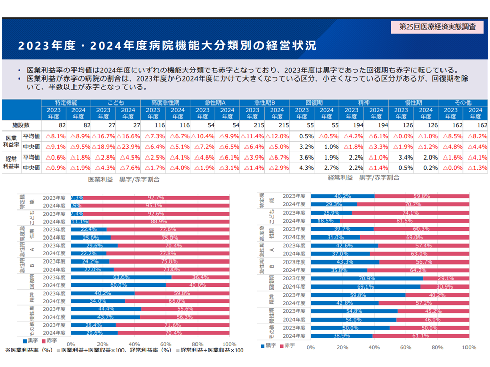 一般病院は規模・機能を問わず2023→24年度にかけて経常赤字が拡大