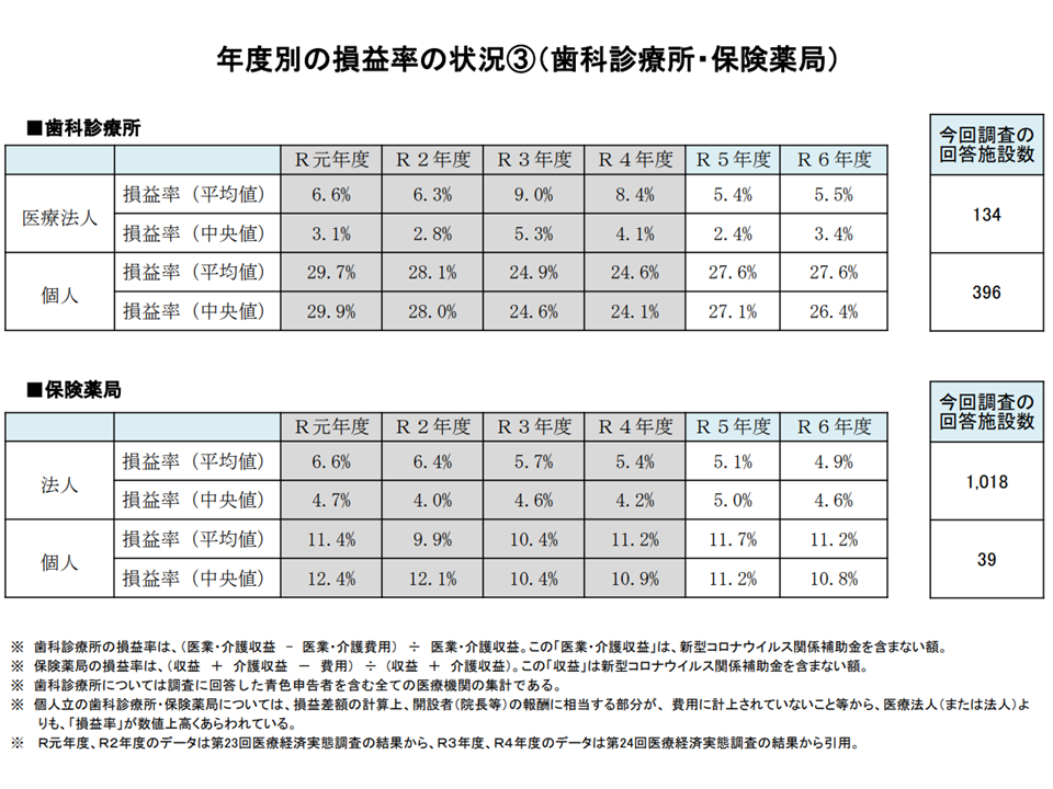 またクリニックや保険薬局は「黒字」経営であるが、利益率は2023年度から24年度にかけて「悪化」している―。