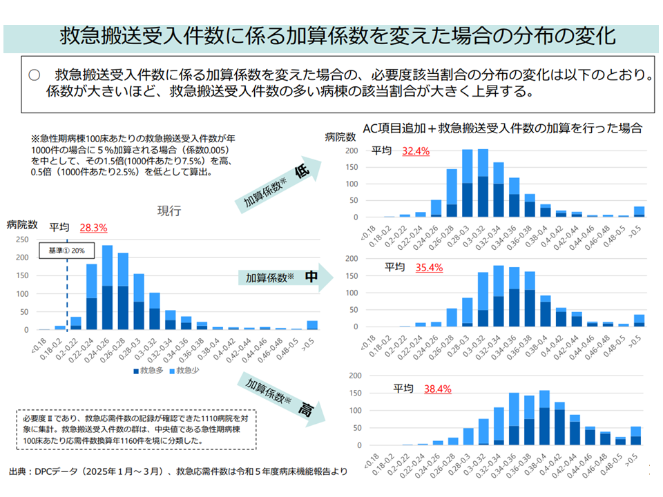 看護必要度、A・C項目に内科的処置を追加し、救急搬送受け入れ度合い等に着目した該当患者割合への加算を検討—入院・外来医療分科会(1)