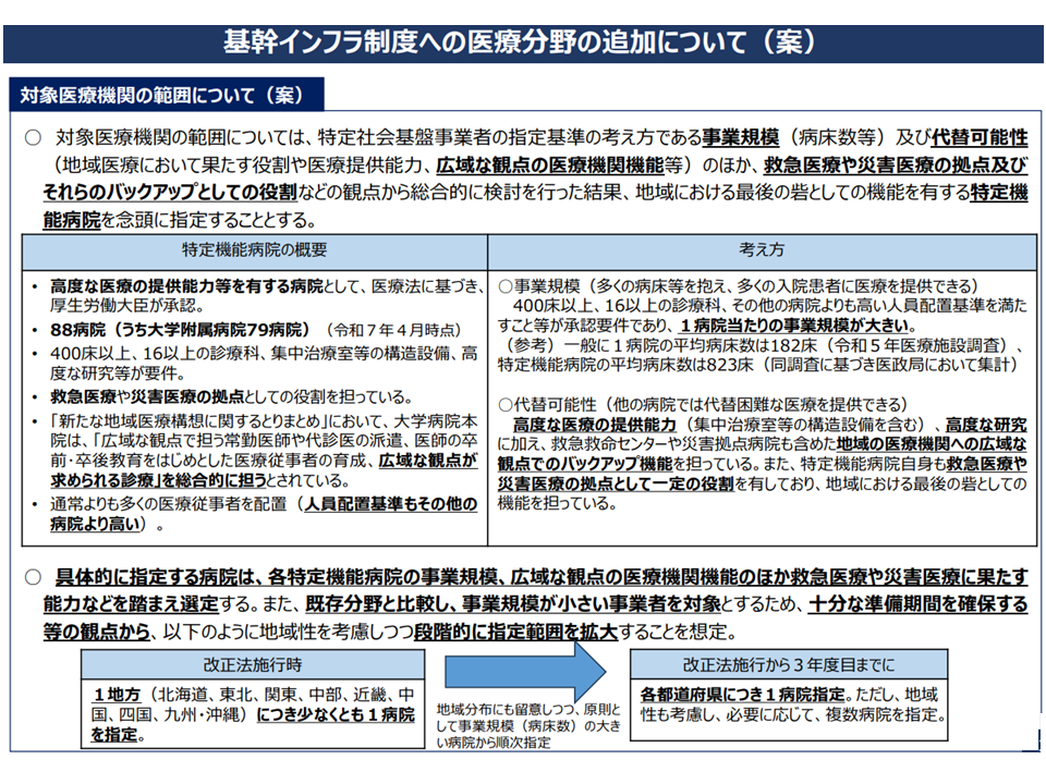 11月25日の医療部会では「基幹インフラ制度への医療分野の追加」も議題となりました。