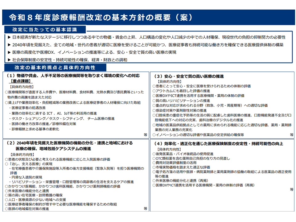 2026年度診療報酬改定の基本方針案の概要(社保審・医療保険部会(1)1 251204)